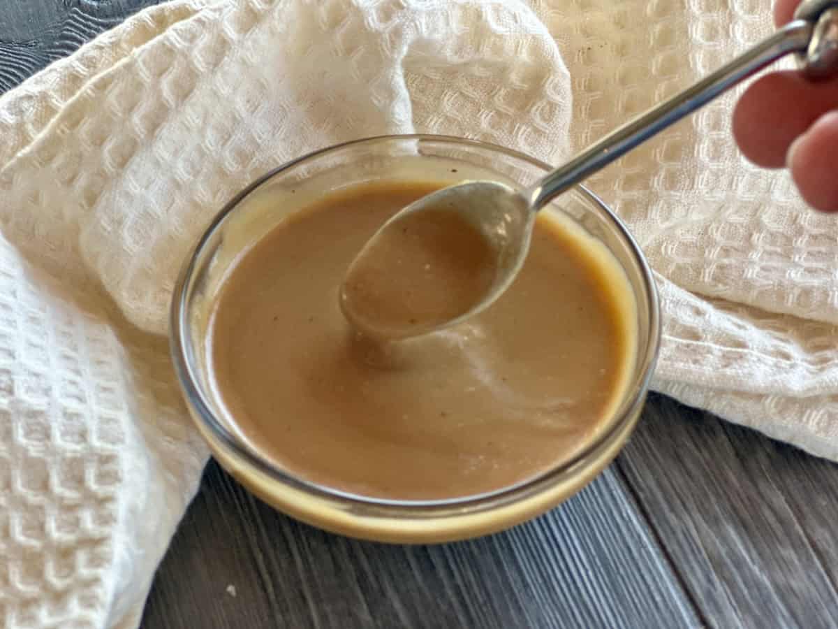 When you are ready to use the leftovers you have two choices. First, the microwave on a reheat setting for 30 seconds and stir. Be careful. The sauce can separate or burn if overheated. The other option is to reheat back in a small sauce pan on low until it loosens up for ya.